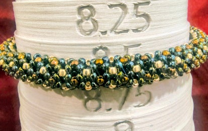 This beaded bangle is made with size 11 glass seed beads from Japan and the Czech Republic. This bangle is just a smidge over 8.5".